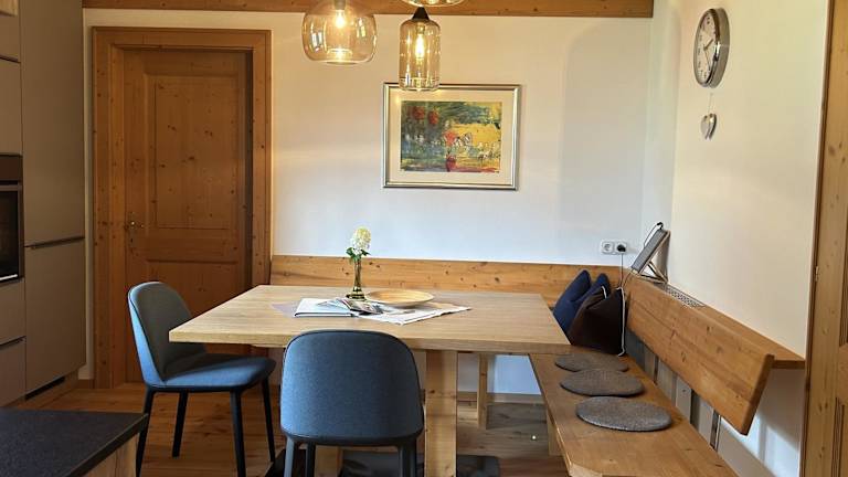 Die Apartments im Hochfeldhof sind im traditionellen Landhausstil eingerichtet und bieten einen gemütlichen Rückzugsort nach einem Tag voller Aktivitäten. Die Apartments verfügen über Holzmöbel, Holzböden und holzgetäfelte Wände und Decken, die eine warme und einladende Atmosphäre schaffen. Jedes Apartment verfügt über eine voll ausgestattete Küche, ein Wohnzimmer mit Sat-TV, ein eigenes Badezimmer und einen Balkon. Einige Apartments befinden sich im Nebengebäude, das nur 70 m entfernt ist.