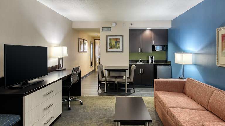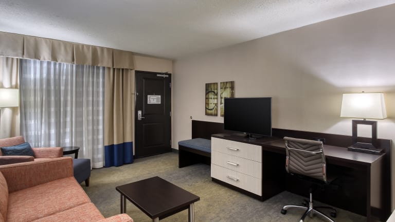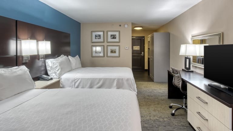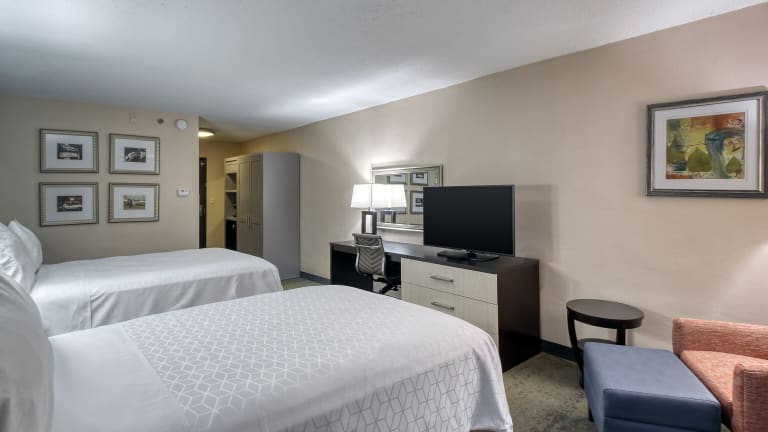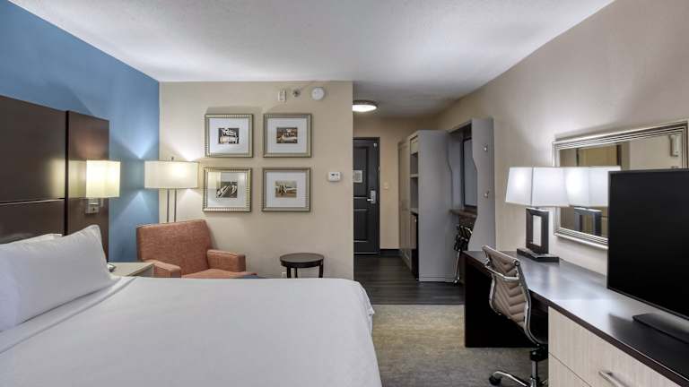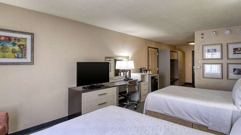 Die 330 Zimmer des Hotels sind komfortabel eingerichtet und verfügen über Annehmlichkeiten wie einen Flachbild-Kabel-TV, einen Schreibtisch und Kaffeezubereitungsmöglichkeiten. Einige der Suiten bieten zusätzliche Annehmlichkeiten wie ein Schlafsofa, eine Mikrowelle und einen kleinen Kühlschrank.