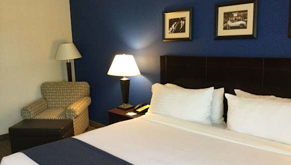 Das Holiday Inn Hotel Bedford DFW Airport Area bietet 243 klimatisierte Nichtraucherzimmer auf 5 Etagen. Die Zimmer sind komfortabel eingerichtet und verfügen über Annehmlichkeiten wie einen großen Schreibtisch, Kaffee- und Teezubereitungsmöglichkeiten und einen Haartrockner. Einige Zimmer sind mit einer Mikrowelle und einem Minikühlschrank ausgestattet.