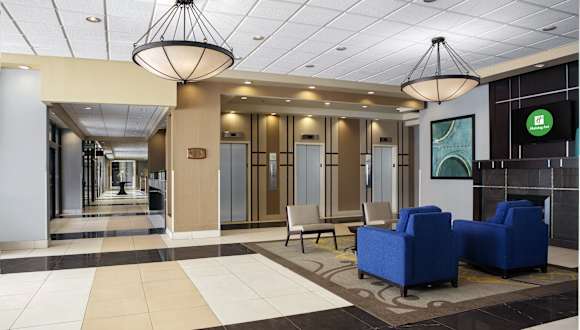 Das Holiday Inn Binghamton-Downtown Hawley Street ist ein zentral gelegenes Hotel im Geschäftsviertel von Binghamton. Es bietet seinen Gästen ein eigenes Restaurant, einen Innenpool und kostenloses WLAN. Die Zimmer sind komfortabel eingerichtet und einige verfügen über einen kleinen Kühlschrank und eine Mikrowelle. Genießen Sie amerikanische Küche und einen schönen Blick auf den Fluss Chenango River im hoteleigenen Café Select Restaurant. Die Broome County Arena ist nur wenige Gehminuten entfernt, und der Zoo Ross Park ist in kurzer Fahrtzeit erreichbar.
