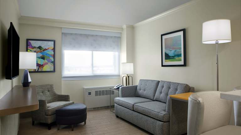 Die Zimmer im Holiday Inn Binghamton-Downtown Hawley Street sind komfortabel und gemütlich eingerichtet. Jedes Zimmer verfügt über Kabel-TV und kostenloses WLAN. Einige Zimmer bieten auch einen kleinen Kühlschrank und eine Mikrowelle, um den Gästen zusätzlichen Komfort zu bieten. Die Zimmer sind der perfekte Ort, um sich nach einem langen Tag in der Stadt zu entspannen und auszuruhen.