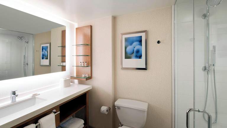 Die Zimmer im Delta Hotels by Marriott Seattle Everett sind gemütlich eingerichtet und bieten Annehmlichkeiten wie eine Kaffeemaschine, einen Sitzbereich und Kabel-TV mit HBO-Filmkanälen. Jedes Zimmer verfügt über einen Schreibtisch mit barrierefreien Steckdosen und USB-Anschlüssen.