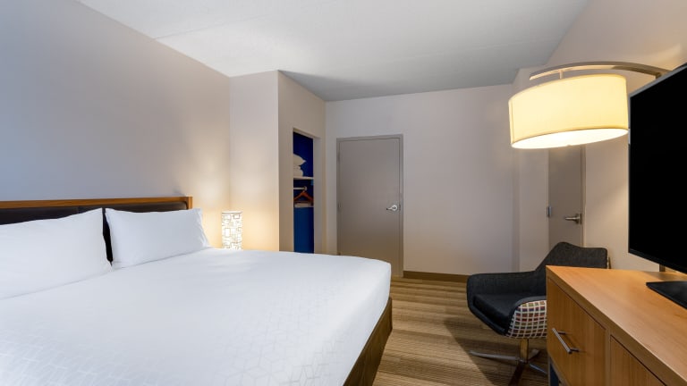 Das Holiday Inn Express Hotel & Suites King of Prussia verfügt über 155 Zimmer auf 7 Etagen, die über einen Aufzug erreichbar sind. Die Zimmer sind komfortabel eingerichtet und bieten Annehmlichkeiten wie kostenfreies WLAN, einen Fernseher und eine Klimaanlage. Einige Zimmer verfügen auch über einen Balkon oder eine Terrasse.