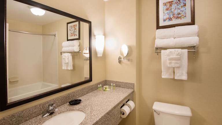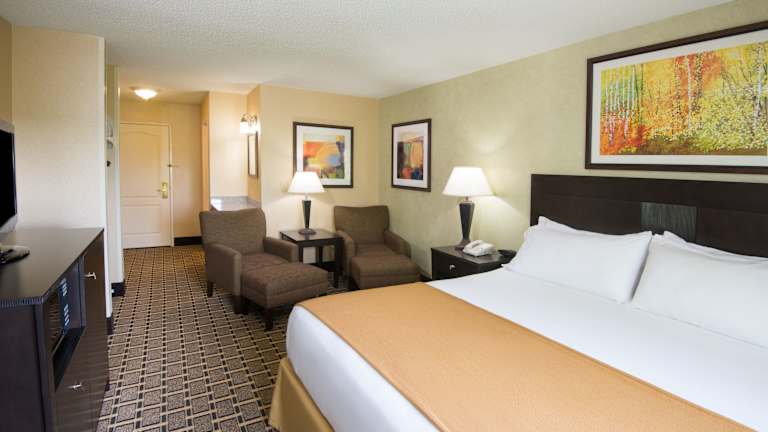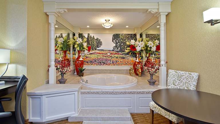 Die Zimmer im Holiday Inn Express & Suites - Sharon-Hermitage sind komfortabel und modern eingerichtet. Entspannen Sie auf der Terrasse und genießen Sie ein kaltes Getränk, während Sie ein Buch lesen. Die Themen-Spa-Suiten bieten eine romantische Atmosphäre für einen erholsamen Abend.