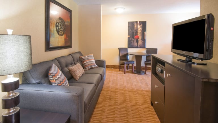 Entspannen Sie im tropischen Innenpool und Spa des Hotels oder trainieren Sie im komplett ausgestatteten Fitnesscenter. Unternehmen Sie einen Ausflug zum nahe gelegenen Buhl Farm Park und genießen Sie die schöne Aussicht.