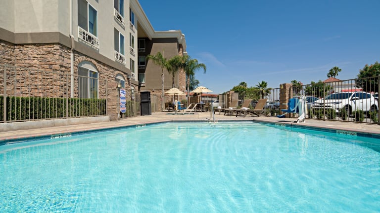 Das Hotel bietet verschiedene Freizeiteinrichtungen für die Gäste. Dazu gehören ein Außenpool und ein Whirlpool mit einer Sonnenterrasse und Liegestühlen. Hier können Sie sich entspannen und die kalifornische Sonne genießen. Für diejenigen, die fit bleiben möchten, steht ein 24-Stunden-Fitnessraum zur Verfügung. Das Hotel bietet auch Wäschemöglichkeiten für den Komfort der Gäste.
