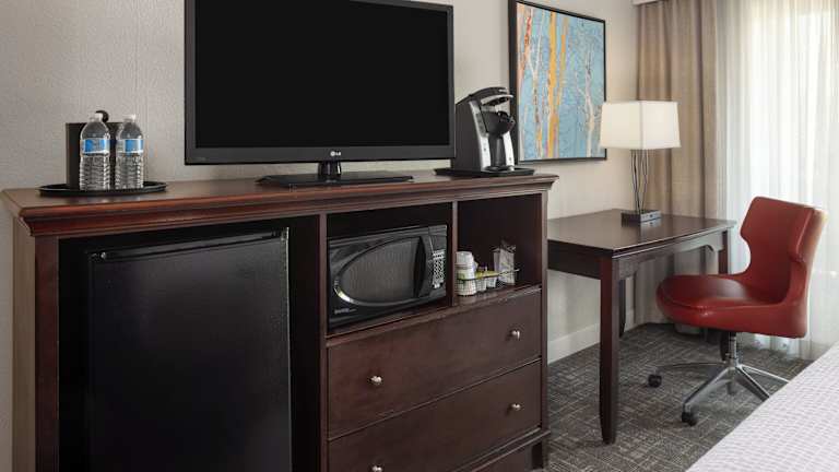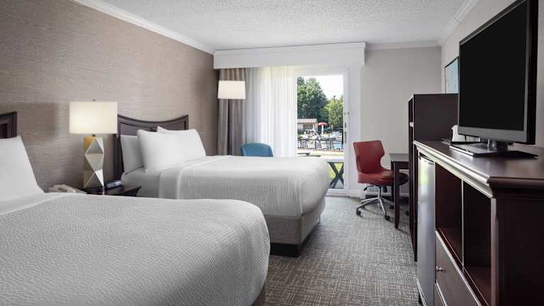 Die geräumigen Zimmer im Holiday Inn Resort Lake George bieten modernen Komfort und Annehmlichkeiten. Jedes Zimmer verfügt über kostenloses WLAN, einen Flachbild-TV und einen Schreibtisch mit großem Sitzbereich. Die Gäste können sich in ihrem Zimmer entspannen und den Aufenthalt in vollen Zügen genießen.