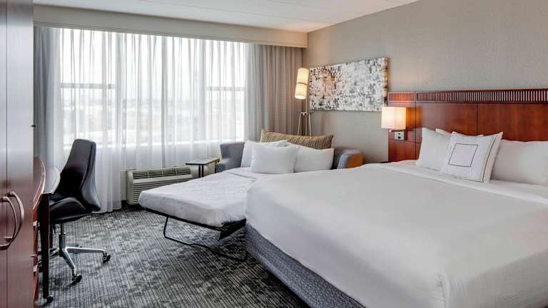 Das Courtyard by Marriott Boston Logan Airport ist ein komfortables Hotel, das nur 4,5 km vom internationalen Flughafen Logan entfernt liegt. Es bietet einen kostenlosen Shuttleservice zum/vom Flughafen und ein Fitnessstudio. Die Zimmer sind modern eingerichtet und verfügen über Kabel-TV und kostenloses WLAN. Das Hotel bietet auch kostenlose öffentliche Parkplätze und ein Restaurant, in dem amerikanische Küche serviert wird.