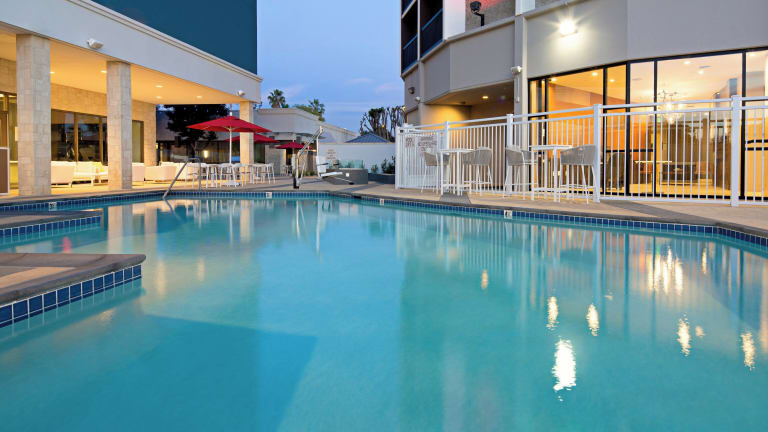 Das Holiday Inn Long Beach - Airport in Long Beach, Kalifornien, ist der perfekte Ort für Reisende, die eine komfortable und praktische Unterkunft suchen. Mit einer günstigen Lage direkt an der Autobahn 405 und weniger als eine Meile vom Flughafen Long Beach entfernt, bietet das Hotel kostenlosen Flughafentransferservice. Die Gäste können sich auf kostenloses WLAN und ein Restaurant freuen, das sowohl zum Frühstück als auch zum Abendessen geöffnet ist. Der Außenpool und das Fitnesscenter bieten zusätzliche Möglichkeiten zur Entspannung und körperlichen Betätigung.