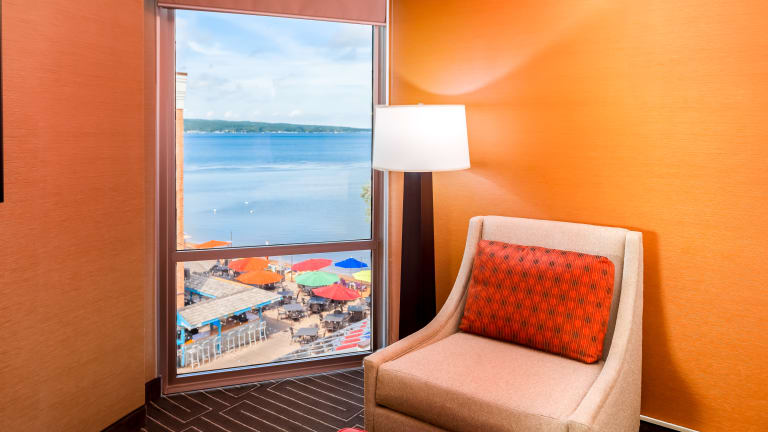Suchen Sie in Traverse City eine Unterkunft mit 3 Sternen in der Nähe des Strandes? Dann ist das Hotel Holiday Inn Traverse City bestimmt genau das Richtige für Sie. 179 klimatisierte Wohneinheiten stehen den Hotelgästen des Hotels Holiday Inn Traverse City zur Auswahl. Die Hotelräumlichkeiten beinhalten eine Bar, ein Restaurant sowie einen Konferenzraum. Chemische Reinigung und Weckdienst vervollständigen das Dienstleistungspaket. Eine kostenfreie Hotelparkmöglichkeit ist für Autos vorhanden. Für einen Flughafentransfer können Sie sich an den Hotelempfang wenden.
