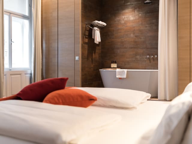 Ein kleines Spa-Separée ermöglicht Ihnen den Rückzug aus dem Großstadtleben. Das Hotel in historischer Umgebung zeichnet sich durch seine hochwertige Möblierung mit erstklassigen Designerstücken aus. Entspannen Sie mit ausgewählten Büchern und CDs in der kleinen Bibliothek, im Wohnzimmer (keine Lobby!) mit offenem Kamin, Klavier und Sitzgelegenheiten zum Lesen, Plaudern oder Kaffee trinken. Tanken Sie neue Energie auf der Gartenterrasse und besuchen Sie das kleine hauseigene Kino mit 8 Sitzplätzen für einen österreichischen Film.