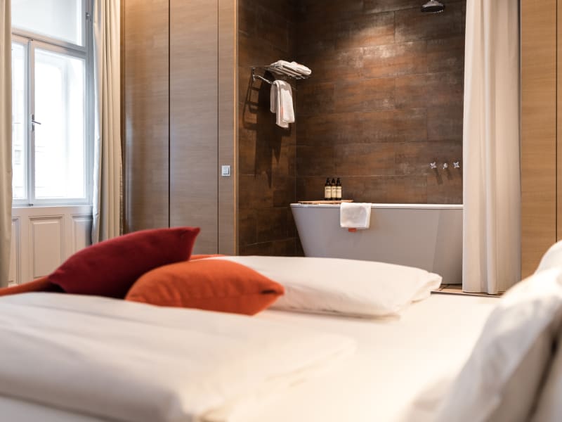 Das Hollmann Beletage hat eine ganz einfache Philosophie, die zwar weit verbreitet sein mag, aber nur ganz selten in die Tat umgesetzt werden kann: „Jeder Gast soll sich bei uns wie zu Hause fühlen!“ Wie dieses Versprechen gehalten wird? Zunächst mit der Größe des Etablissements: 25 große bis sehr große Zimmer in einem sehr gepflegten, noblen Gründerzeithaus im Herzen der Wiener Altstadt bieten maximal 50 Gästen eine sehr persönliche Heimstatt.