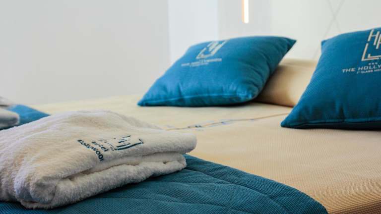 Die Zimmer im Hotel Hollywood sind elegant und verfügen über einen Balkon. Die klimatisierten Zimmer sind renoviert und mit Holzmöbeln ausgestattet. Zur Ausstattung gehören Sat-TV, ein Safe und kostenfreies WLAN in der Lobby. Zusätzlich stehen den Gästen 1 Sonnenschirm, 1 Sonnenliege und 1 Liegestuhl am hoteleigenen Strand zur Verfügung.