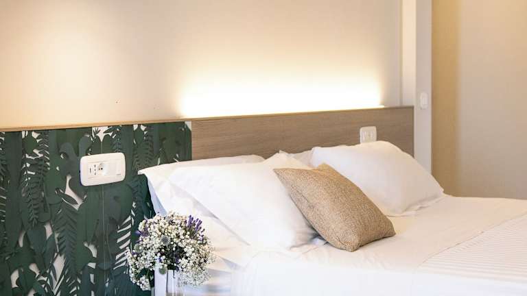 Das Hotel verfügt über 57 Zimmer, die auf 5 Etagen verteilt sind und bequem mit dem Aufzug erreichbar sind. Die Zimmer sind klimatisiert und mit einem Schreibtisch, einem Safe, einem Flachbild-TV, einem Balkon und einem eigenen Bad mit Dusche und Bidet ausgestattet. Einige Zimmer verfügen auch über eine Küchenzeile mit einem Kühlschrank. WLAN ist in allen Bereichen des Hotels kostenlos verfügbar.