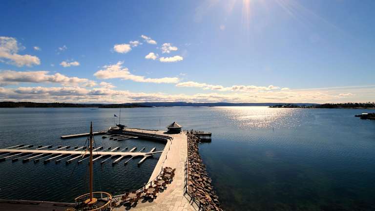 Das Holmen Fjordhotell befindet sich 20 Fahrminuten vom Stadtzentrum Oslos entfernt und bietet eine herrliche Aussicht auf den Oslofjord. Die Privatparkplätze stehen kostenfrei zur Verfügung.
