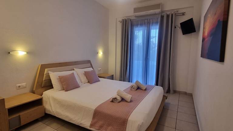 Die Zimmer im Horizon Resort sind im traditionellen ägäischen Stil gestaltet und bieten einen gemütlichen Rückzugsort nach einem langen Tag am Strand. Jedes Zimmer verfügt über einen eigenen Balkon mit Blick auf die Berge, das Meer oder den Garten am Pool. Die Zimmer sind mit modernen Annehmlichkeiten wie kostenfreiem WLAN ausgestattet und bieten alles, was Sie für einen komfortablen Aufenthalt benötigen.