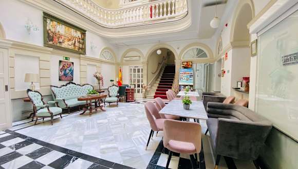 Das Hotel Las Cortes De Cádiz ist ein elegantes Hotel im Herzen der Altstadt von Cádiz. Es bietet seinen Gästen eine komfortable Unterkunft in einem historischen Gebäude, nur wenige Gehminuten vom Hafen entfernt. Das Hotel verfügt über eine Dachterrasse mit herrlichem Blick auf die Stadt und kostenfreies WLAN. Die Zimmer sind klimatisiert und bieten moderne Annehmlichkeiten wie einen Flachbild-TV. Das Restaurant des Hotels serviert traditionelle andalusische Küche und Tapas. Der Bahnhof, der Busbahnhof und der Strand Playa La Caleta sind bequem zu Fuß erreichbar.