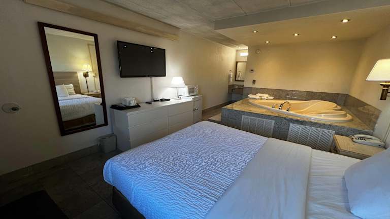Das Travelodge by Wyndham Parsippany verfügt über 92 Zimmer, die mit Annehmlichkeiten wie Klimaanlage, TV, Mikrowelle, Kaffeemaschine und kostenfreiem WLAN ausgestattet sind. Einige Zimmer verfügen über einen Balkon oder eine Terrasse. Die Unterkunft bietet auch einen Zimmerservice und eine 24-Stunden-Rezeption.