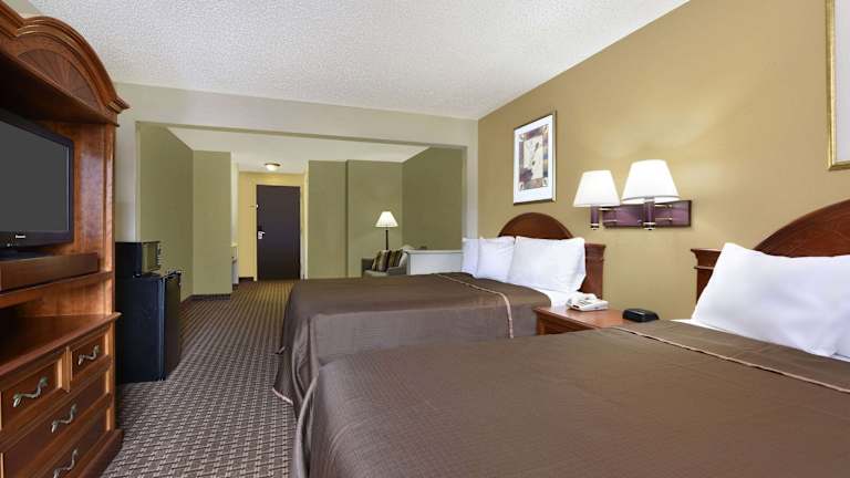 Das Howard Johnson by Wyndham Allentown/Dorney Hotel & Suites bietet eine ideale Lage neben dem Dorney Park und dem Wildwater Kingdom Water Park. Die geräumigen Zimmer sind mit Annehmlichkeiten wie kostenlosem WLAN und einem Kühlschrank ausgestattet. Das Hotel verfügt über einen Innenpool und ein tägliches Frühstück. Es bietet auch kostenlose Parkplätze und eine Wäscherei vor Ort. Die Lage des Hotels ermöglicht es Ihnen, den nahegelegenen Allentown Golfplatz zu erkunden und das Liberty Bell Shrine sowie das Allentown Art Museum zu besuchen.