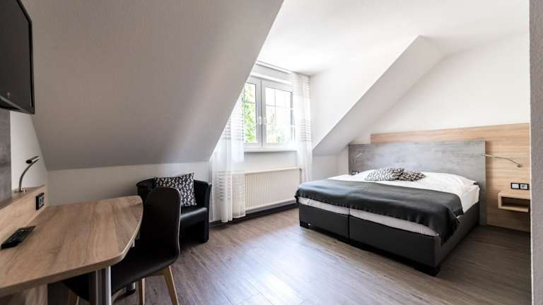 Die Zimmer im Hotel Hüerländer sind gemütlich eingerichtet und verfügen über einen Schreibtisch, einen Flachbild-TV und ein eigenes Badezimmer mit Dusche und Haartrockner. Ein Kleiderschrank ist ebenfalls vorhanden, um Ihre Kleidung und persönlichen Gegenstände aufzubewahren.