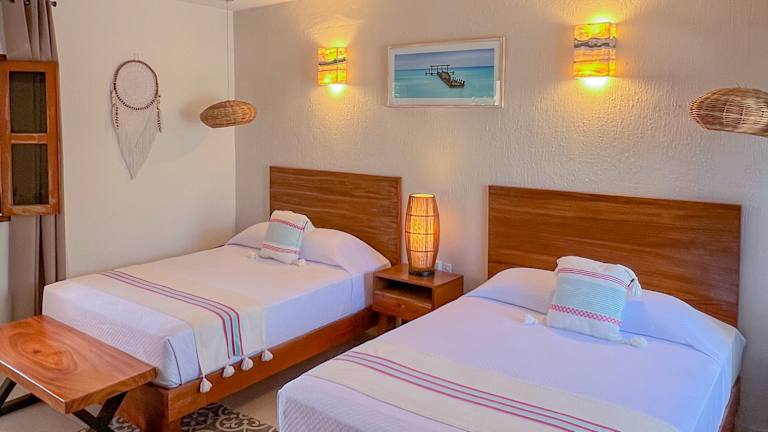 Das Hotel verfügt über 50 Zimmer, die alle mit Klimaanlage, einem Ventilator und einer Minibar ausgestattet sind. Die Zimmer sind im Holzdekor gestaltet und bieten einen gemütlichen Rückzugsort nach einem Tag am Strand. Zur Ausstattung gehören auch ein TV mit Kabelempfang, ein Schreibtisch und kostenfreies WLAN. Die meisten Zimmer verfügen über einen Balkon.