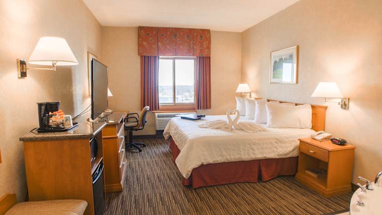 Das Humphry Inn and Suites verfügt über 128 Nichtraucherzimmer, die sich über 6 Etagen verteilen. Die Zimmer sind über einen Aufzug erreichbar und bieten modernen Komfort. Zur Ausstattung gehören eine Klimaanlage, ein Fernseher, ein Schreibtisch, eine Mikrowelle, ein Minikühlschrank, eine Kaffeemaschine und kostenloses WLAN. Im Badezimmer finden Sie eine Dusche oder Badewanne, einen Haartrockner und kostenlose Kosmetikartikel.