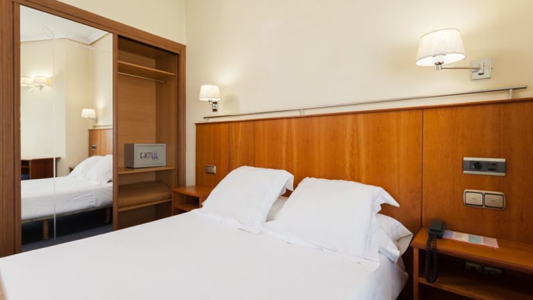 Das Hotel Ciudad de Compostela verfügt über 30 Zimmer, die sich über 5 Etagen erstrecken. Alle Zimmer sind komfortabel eingerichtet und verfügen über ein eigenes Badezimmer mit Badewanne oder Dusche. Kostenfreie Pflegeprodukte und ein Haartrockner stehen ebenfalls zur Verfügung. Zur weiteren Ausstattung gehören ein TV, ein Safe, eine Minibar und ein Schreibtisch. WLAN ist im gesamten Hotel kostenfrei verfügbar.