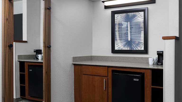 Die Zimmer im Hyatt Place Charlotte Airport/Lake Pointe sind komfortabel und modern eingerichtet. Sie verfügen über Annehmlichkeiten wie einen Kühlschrank, einen Flachbild-TV und eine Kaffeemaschine. Ein Sitzbereich bietet zusätzlichen Komfort. Die Zimmer sind ideal für einen erholsamen Aufenthalt nach einem langen Tag.