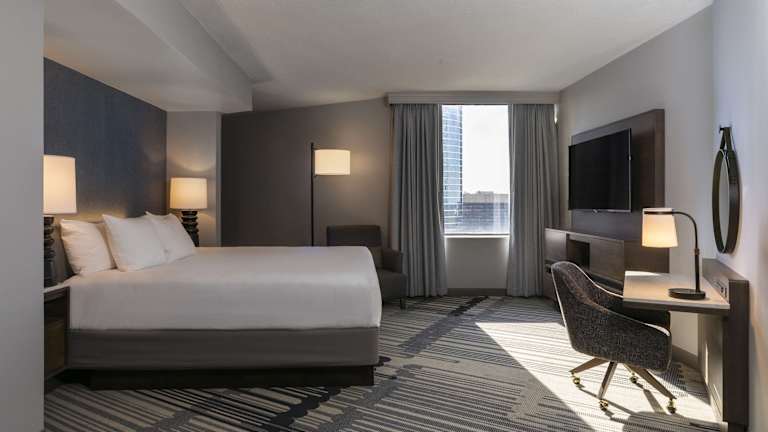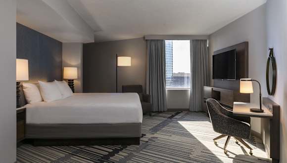 Die Zimmer im Hyatt Regency Houston bieten einen komfortablen Rückzugsort mit modernen Annehmlichkeiten. Jedes Zimmer verfügt über einen Flachbild-TV, eine iPod-Dockingstation, eine Eintassen-Kaffeemaschine und gehobene Pflegeprodukte. Einige Zimmer bieten auch einen herrlichen Blick auf die Innenstadt von Houston.