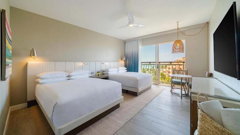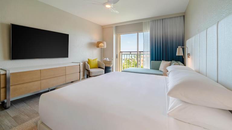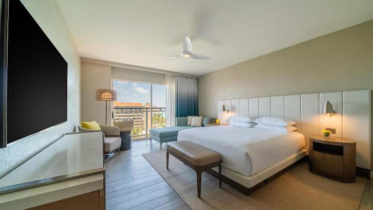 Die neu gestalteten Zimmer im Hyatt Regency Aruba Resort & Casino sind modern und stilvoll eingerichtet. Sie sind inspiriert vom türkisblauen Wasser von Aruba und bieten eine einladende Atmosphäre. Die Zimmer verfügen über komfortable Betten, einen Flachbild-TV und geräumige Badezimmer mit hochwertigen Materialien.