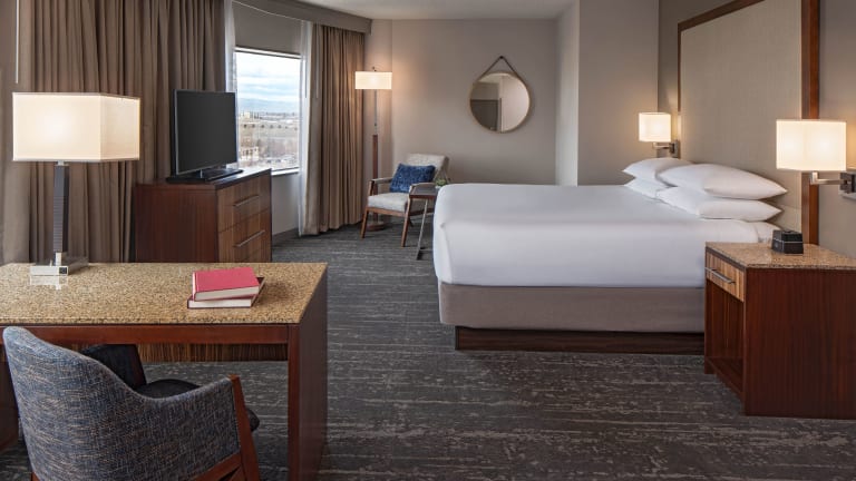 Das Hyatt Regency Denver Tech Center verfügt über 451 Nichtraucherzimmer, die modern und komfortabel eingerichtet sind. Jedes Zimmer ist mit einer Klimaanlage, einem Safe, einem Schreibtisch, einem Flachbild-Kabel-TV und kostenlosem WLAN ausgestattet. Ein kleiner Kühlschrank, eine Mikrowelle und Kaffeezubehör sind ebenfalls vorhanden. Die Badezimmer verfügen über eine Dusche, einen Haartrockner und kostenlose Pflegeprodukte. Rollstuhlgerechte Zimmer sind auf Anfrage verfügbar.
