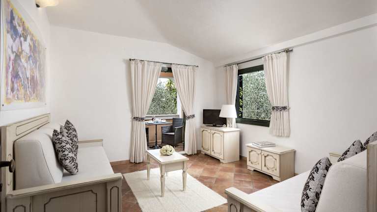 Das Hotel Resort verfügt über typisch sardische Gebäude, die von einer grünen Umgebung aus Palmen und Olivenhainen umgeben sind. Die Zimmer sind gemütlich und komfortabel eingerichtet und bieten Ihnen einen angenehmen Rückzugsort nach einem Tag am Strand oder am Pool.