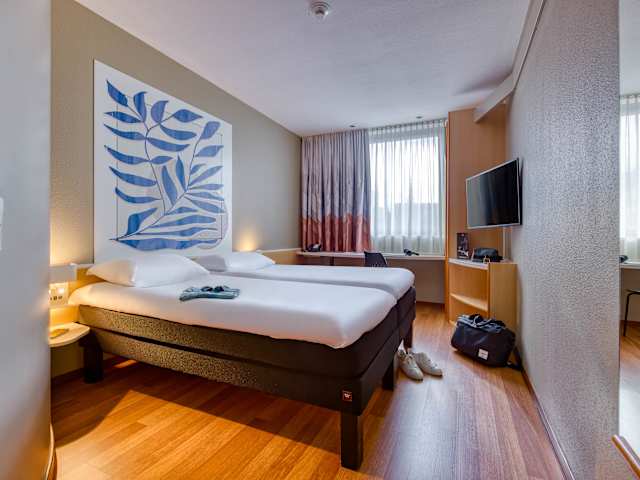 Wählen Sie zwischen DBC Zimmer mit 1 Doppelbett 160 x 200 cm, oder TWC Zimmer mit zwei getrennten Betten Zur Ausstattung unserer 95 Zimmer zählen eine regulierbare Klimaanlage, gratis WLAN, TV inklusive vielfältiger Sky Sender und innovative Sweet Bed by ibis Betten für ultimativen Schlafkomfort sowie ein Schreibtisch für Ihr mobiles Office.
