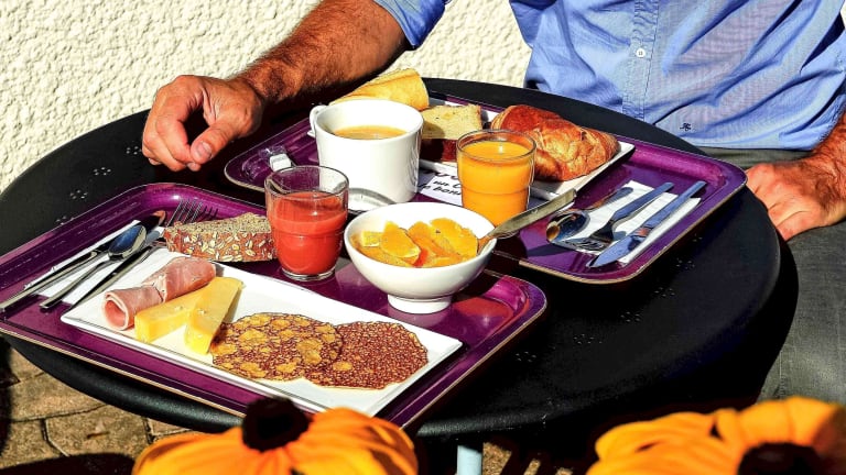 Das Hotel bietet ein leckeres Frühstücksbuffet mit einer Vielzahl von süßen und herzhaften Optionen wie Eiern, Obstsalat, Joghurt und Säften. Es gibt auch frische französische Backwaren und Madeleine-Feingebäck. Für unterwegs können Sie sich ein Heißgetränk und ein Stück Obst mitnehmen. Die Hotelbar lädt zum Entspannen bei einem Getränk ein.