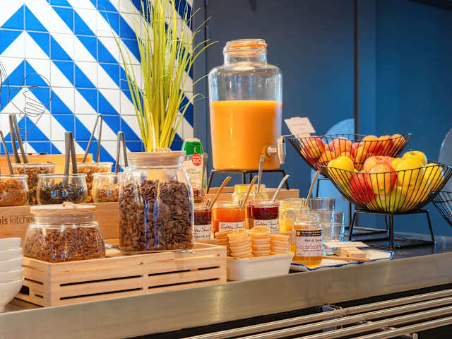 Starten Sie Ihren Tag im ibis Manosque Hotel mit einem leckeren Frühstücksbuffet. Das Buffet bietet eine Auswahl an süßen und herzhaften Speisen, darunter Eier, Obstsalat, Joghurt und Säfte. Zusätzlich werden französische Backwaren und Madeleine-Kuchen, ein heißes Getränk und ein Stück Obst zum Mitnehmen angeboten. Auch außerhalb der regulären Frühstückszeiten können Sie eine leichtere Option ab 04:00 Uhr genießen.