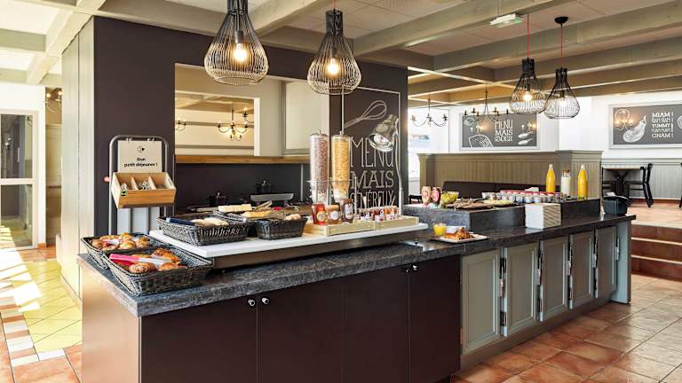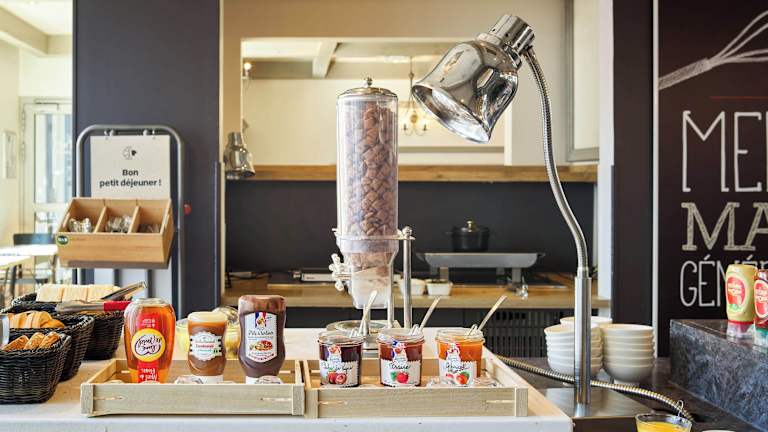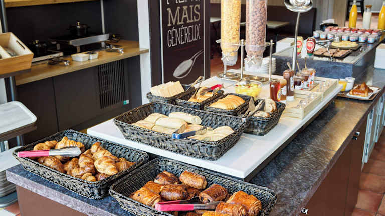 Das Hotel bietet ein Frühstücksbuffet mit einer Vielzahl von süßen und herzhaften Speisen, darunter Eier, Obstsalat, Joghurt und Säfte. Es gibt auch eine Auswahl an Backwaren, französischen Madeleine-Kuchen, heißen Getränken und Obst zum Mitnehmen. Außerhalb der regulären Frühstückszeiten steht den Gästen eine leichtere Option zur Verfügung. Das Abendessen kann von Montag bis Donnerstag im Restaurant des Hotels eingenommen werden.