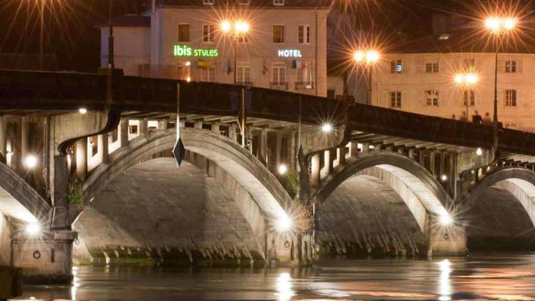 Das ibis Styles Bayonne befindet sich in einer günstigen Lage am Ufer des Flusses Adour und bietet einen atemberaubenden Blick auf die mittelalterliche Stadt Bayonne. Die Kathedrale aus dem 12. Jahrhundert ist bequem zu Fuß erreichbar. Das Hotel liegt nur 50 m vom Bahnhof Bayonne und 200 m vom historischen Stadtzentrum entfernt. Der Flughafen ist 8 km entfernt und die spanische Grenze 35 km. Öffentliche Parkplätze stehen gegen Aufpreis am Bahnhof zur Verfügung, während kostenlose Parkplätze im Freien in der Nähe des Hotels am Flussufer von 18:00 bis 09:00 Uhr verfügbar sind.