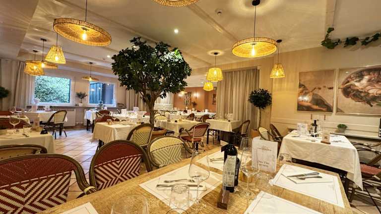 Im hoteleigenen Restaurant können Sie die köstliche italienische und französische Küche genießen. Das Restaurant ist in hellgrünen Wänden und Kronleuchtern gehalten, was eine angenehme Atmosphäre schafft. Entspannen Sie sich nach einem langen Tag in der Bar oder auf der Terrasse und genießen Sie ein erfrischendes Getränk.