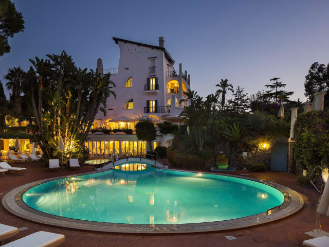 Das Grand Hotel Il Moresco befindet sich in Ischia Porto in der Nähe der Via Roma, einer erstklassigen Einkaufsstraße mit Boutiquen, Restaurants und Bars. Das Hotel liegt inmitten eines Pinienhains und bietet einen wunderschönen Blick auf die umliegende Natur. Der Strand ist nur 100 m entfernt und die lebhafte Via Roma erreichen Sie nach ca. 200 m.