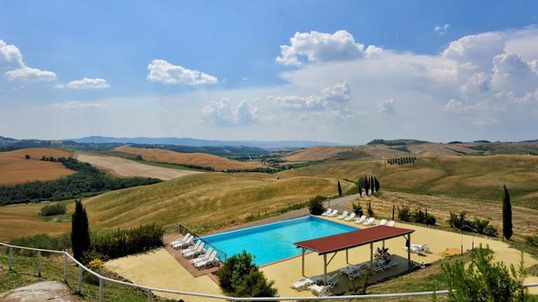 Das Agrihotel Il Palagetto liegt oberhalb von Volterra und San Gimignano in den Hügeln der Toskana und bietet einen atemberaubenden Panoramablick auf die grüne Landschaft. Die Umgebung ist ruhig und beschaulich und lädt zum Entspannen ein. Volterra ist nur 20 Minuten entfernt und das mittelalterliche Städtchen San Gimignano erreichen Sie nach 30 Minuten. Weitere beliebte Städte wie Florenz, Siena und Pisa sind innerhalb von etwa einer Stunde erreichbar. Die toskanische Küste ist ebenfalls nur 45 Minuten entfernt. In der Umgebung des Hotels können Sie die Schönheit der Natur genießen und ein nahe gelegenes Naturschutzgebiet erkunden. Es gibt auch zahlreiche Aktivitäten wie Reiten, Fahrradfahren, Angeln, Wandern und Golf, die in der Nähe angeboten werden.