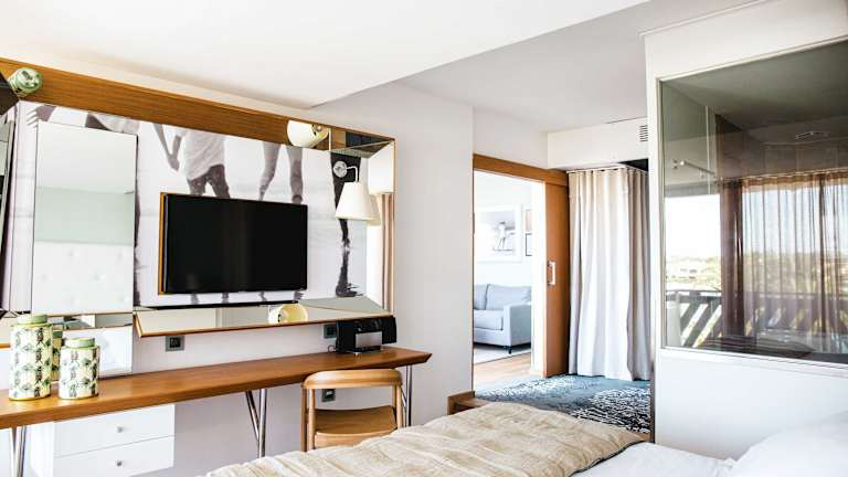 Die geräumigen Suiten im Relais et Châteaux Thalasso & Spa Ile de la Lagune sind klimatisiert und verfügen über kostenloses WLAN. Jede Suite bietet ein luxuriöses Marmorbad mit Pflegeprodukten, Bademänteln und Hausschuhen. Sie können auch eine Terrasse mit Blick auf die Lagune oder die mediterranen Gärten genießen.