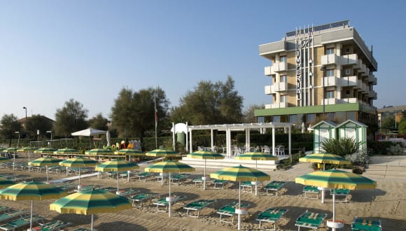 Das UNAWAY Imperial Beach Hotel in Marotta ist der ideale Ort für einen entspannten Strandurlaub. Mit einem eigenen Strand, einem schönen Garten mit Pool und einem vielfältigen Unterhaltungsprogramm bietet das Hotel alles, was Sie für einen gelungenen Aufenthalt benötigen. Genießen Sie den Meerblick von Ihrem Balkon aus und lassen Sie sich von der italienischen Küche im hoteleigenen Restaurant verwöhnen. Kinder werden die Animation und die vielen Freizeitaktivitäten lieben. Ein kostenloser Shuttleservice zum Bahnhof und die Nähe zu anderen attraktiven Orten machen das Hotel zu einem perfekten Ausgangspunkt, um die Region Marche zu erkunden.