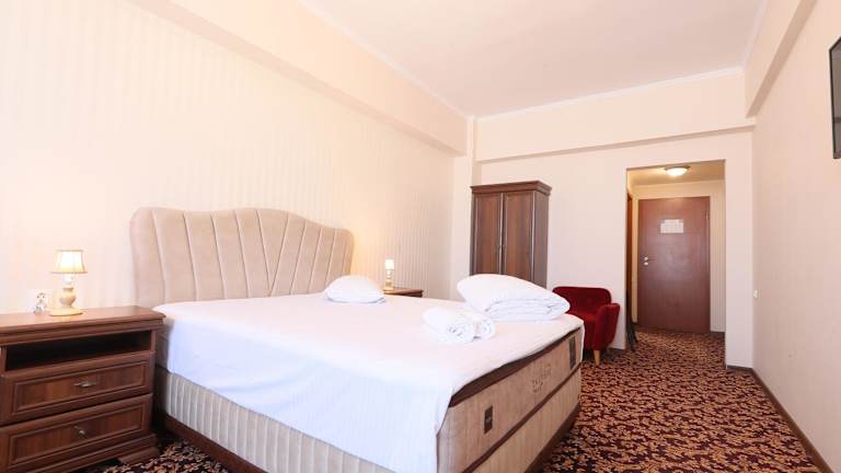 Das Hotel Impero profitiert von seiner verkehrsgünstigen Lage am Decebal Boulevard in Oradea. In unmittelbarer Nähe finden Sie Restaurants, Geschäfte und Sehenswürdigkeiten. Der internationale Flughafen Oradea ist nur 3 km entfernt und bietet eine bequeme Anreisemöglichkeit für internationale Gäste.