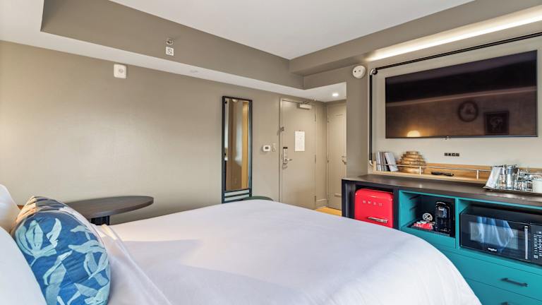 Die Zimmer im Hotel Indigo Baton Rouge Downtown sind in hellen Farben gehalten und verfügen über einen Schreibtisch, einen Flachbild-TV und Kaffeezubehör. Die Zimmer sind modern eingerichtet und bieten Holzböden.