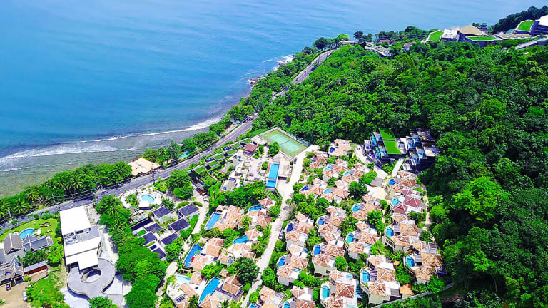 Das Indochine Resort and Villas befindet sich in einer malerischen Hügellandschaft mit Blick auf die Bucht Kalim. Es liegt nur 2 km vom Patong Beach entfernt und bietet eine ideale Lage für einen entspannten Strandurlaub. Der internationale Flughafen Phuket ist ebenfalls leicht erreichbar und nur 45 Fahrminuten entfernt. Die Umgebung des Hotels lädt zu Aktivitäten wie Tennis und Golf ein und bietet eine Vielzahl von Restaurants und Einkaufsmöglichkeiten.