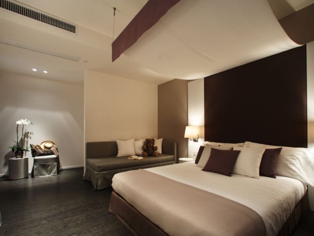Lassen Sie sich von einer entspannten und raffinierten Atmosphäre verwöhnen. 36 "Casual Luxus"-schallisolierte Zimmer und Suites mit moderner Inneneinrichtung, komfortable Betten, ein elegantes Badezimmer mit Sprühregen-Effekt Dusche, Fön, Kosmetikspiegel. W-Lan, Minibar, Safe, Diretkwahl-Telefon und Wasserkocher. Alle Zimmer verfügen über einen Balkon.