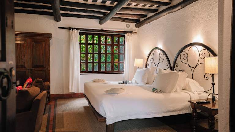 Die Zimmer im Inkaterra Machu Picchu Pueblo Hotel sind geräumig und mit Fliesenböden und einem gemütlichen Sitzbereich ausgestattet. Die Einrichtung ist stilvoll und mit traditionellen Wandteppichen aus den Anden verziert. Die Betten sind mit hochwertiger Baumwollbettwäsche, Alpakadecken und Baldachinen ausgestattet. Einige Zimmer bieten zusätzliche Annehmlichkeiten wie WLAN, einen Kamin, Marmorwaschbecken und einen privaten Pool. Hier können Sie sich nach einem ereignisreichen Tag in Machu Picchu entspannen und den Komfort genießen.