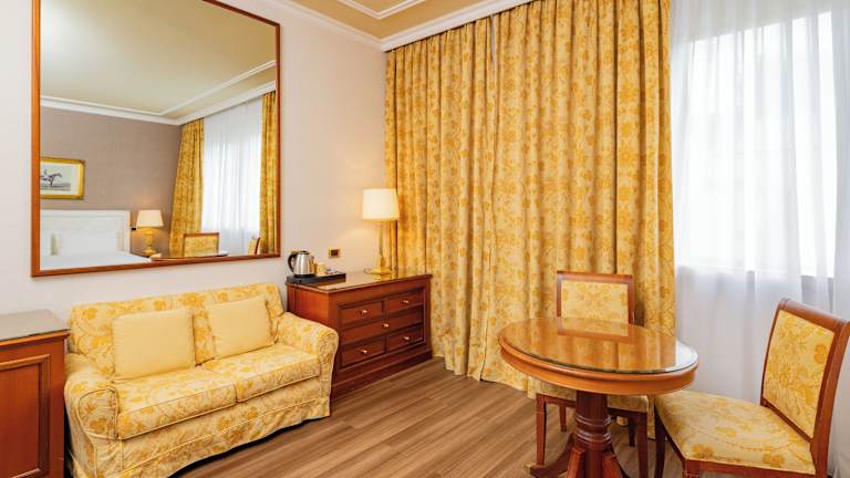 Die 116 Zimmer des Hotels Internazionale sind geräumig und klimatisiert. Jedes Zimmer ist mit einem Flachbild-TV und einem eigenen Badezimmer ausgestattet, das über einen Haartrockner und Pflegeprodukte verfügt. Kostenfreier Zugang zum Fitnesscenter im nahegelegenen Royal Hotel Carlton ist ebenfalls inbegriffen. Gegen Aufpreis können Sie auch den Wellnessbereich des Partnerhotels nutzen.
