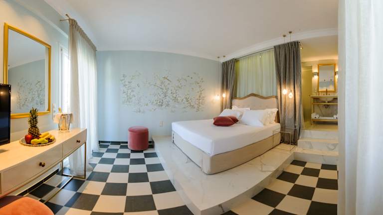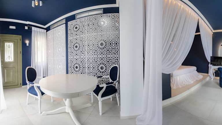 Die Suiten im Irida Boutique Hotel sind stilvoll eingerichtet und bieten ein unverwechselbares Farbthema sowie mediterranes Interieur und Marmorbäder. Jede Suite verfügt über ein elegantes Wohnzimmer und einen geschickt integrierten Küchenbereich.