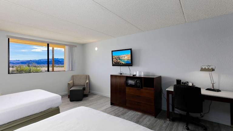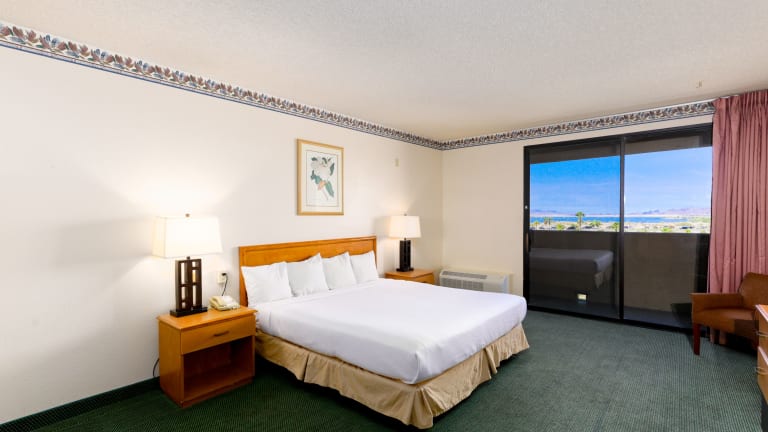 Das Island Inn Lake Havasu bietet insgesamt 117 Zimmer auf 4 Etagen. Die Zimmer sind über einen Aufzug erreichbar und verfügen über Annehmlichkeiten wie Klimaanlage, Fernseher und einen Schreibtisch. Einige Zimmer sind auch mit einer Mikrowelle und einem Kühlschrank ausgestattet. Rollstuhlgerechte Zimmer sind ebenfalls verfügbar.